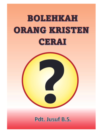Narasi : Bolehkah orang Kristen cerai? di buku ini dijelaskan mengenai hal ini, agar kita dapat hidup sesuai Firman Tuhan. Daftar isi: I. Gereja-gereja yang mengizinkan perceraian II. Gereja-gereja yang tidak mengizinkan perceraian Pasal 1. Latar belakang 1. Kerusakan hidup nikah yabg makin meningkat 2. Tidak mengerti isi Alkitab 3. Tidak mempunyai kuasa Allah 4. Tidak memelihara hidup nikahnya dengan baik Pasal 2. Cerai itu bukan kehendak Allah 1. Yang telah dipersatukan Allah tidak boleh diceraikan 2. Hanya tercerai oleh kematian 3. Allah benci akan perceraian 4. Cerai itu dosa, melawan Allah 5. Potong kepala = mati 6. Seharusnya bukan cerai, tetapi saling mengampuni 7. Wasiat Lama bukan mengizinkan tetapi karena keras hati Pasal 3. “Adakah” ayat-ayat yang mengizinkan Salah tafsir Pasal 4. Mengapa ada perceraian 1. Wasiat Lama itu ibadah lahiriah 2. Kebenaran Wasiat Lama merupakan perumpamaan 3. Pada permuliaan tidaklah demikian 4. Orang Wasiat Lama yang bercerai itu karena III. Pelanggaran A. Ini melanggar Firman Tuhan B. Perkecualian C. Tidak ada ampun? D. Cacat dan pemulihan Tanda-tanda pemulihan dari Tuhan 1. Ia sungguh hidup suci 2. Kalau Tuhan Yesus membaptiskannya dalam Roh Kudus 3. Kadang-kadang ada tanda seperti Daud